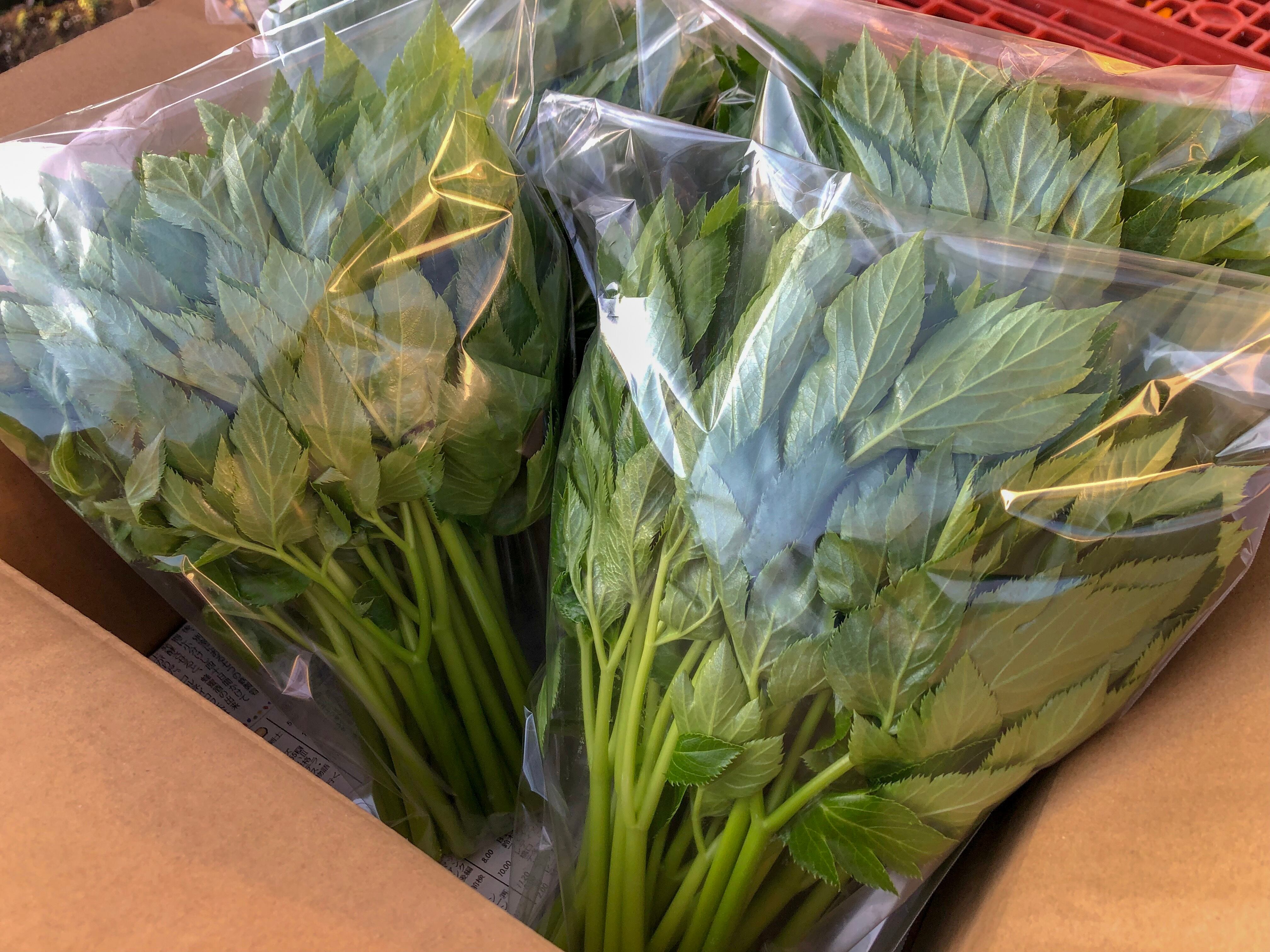 市場を通して出荷されたものは収穫から店頭に並ぶまでに3~4日かかっていますが、関東地方など翌日午前着が可能なエリアであれば収穫から最短24時間で新鮮なあしたばをご賞味いただけます。(状況によっては午後に収穫をしてから翌日発送となることもあります。